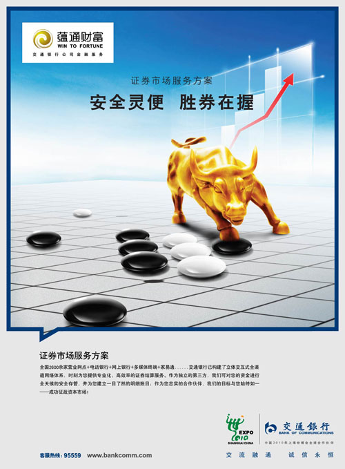我们作为独立第三方可以对您的资金进行有效安全的存管,为您建立交易结算资金明细账。借助全国数据集中式综合服务平台,您可以通过我行网点柜台、电话银行、网上银行、多媒体终端、家易通,或证券公司等多种渠道,方便快捷地办理证券结算业务,从而成功征战资本市场!