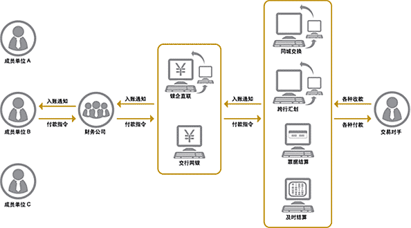 为了行使结算中心职能,财务公司对各成员单位的结算进行集中管理,按照集团公司的要求,可能是单纯管理应收或者应付,也会有财务公司集中代理收付的模式。
