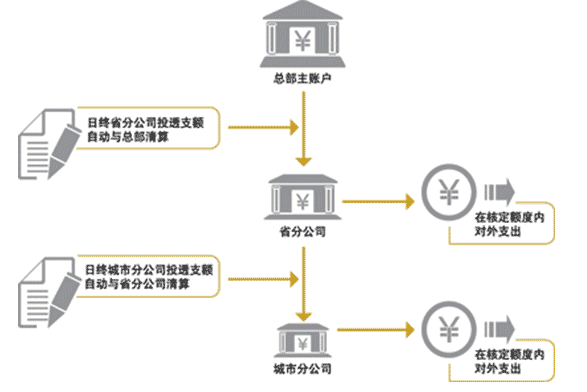 即下级账户对外支出累计额度以下级账户归集至上级账户的余额为限;